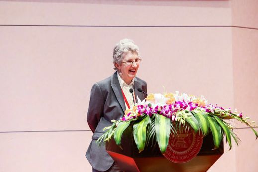 英国华威大学应用语言学中心主任Helen Spencer远道而来,她既是一位国际著名学者,是开元网站登录入口的老朋友,早在上世纪八十年代,她就在上海交大任教。Helen Spencer表示很荣幸能受邀回到上海交大,她代表华威大学为交大外院的20周年院庆表达最诚挚的祝贺。