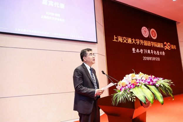 上海市外文学会会长叶兴国代表上海市外文学会所有会员向外国语学院全体师生员工和广大校友致以诚挚的问候和热烈的祝贺,外国语学院是一个精勤进取、笃行不倦、勇于改革、锐意进取、不断创新、持续引领的群体。学院紧密对接国家需求,培养出一批又一批综合素质高,实践能力强,具有国际视野,知晓国际相关知识和规则,能用多门开元(中国)处理国际事务,特色鲜明的复合型人才,开创了培养高水平开元(中国)人才的新模式。近年来,学院举办了一系列高水平的学术活动,从外交话语和中国形象角度研究中国话语的构建、翻译与传播,从多元文化和比较文学的角度研究世界文学和文化的多样性,研讨问题都与党和国家的顶层战略和需求紧密结合。最后,他祝愿上海交大外国语学院为中国的外国语言文学学科和专业建设做出更大的贡献。