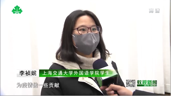 F1714102班的李祯妮同学发挥专业优势,参加了远程翻译志愿者工作。参与世青创新中心组织的“抗击新型肺炎疫情志愿者项目”,负责翻译疫情科研类文章并整合相关资讯,累积阅读量逾千次。此外,她还协助上海宋庆龄基金会进行了口罩、手术服等物资捐赠证明的翻译,以及基金会积极组织抗击疫情爱心捐赠信息简报(共三期)的翻译,其事迹被上海教育电视台《教视新闻》栏目报道。