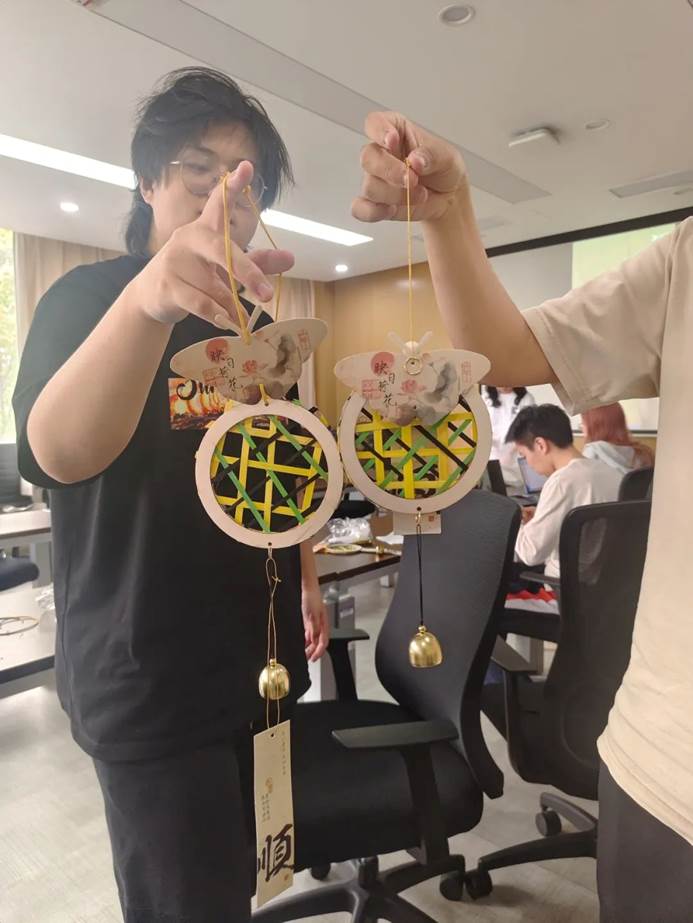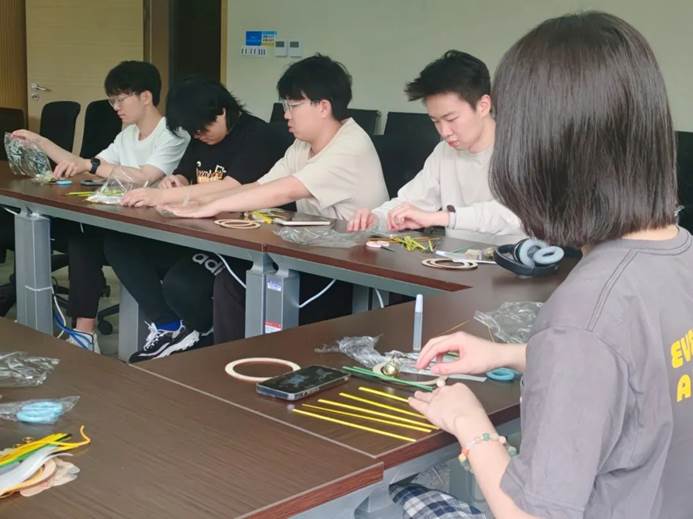 活动现场,志愿者同学详细讲解了竹编风铃的制作工艺以及清明节气的丰富内涵。从竹子的选材,到编织技巧的演示,每一个环节都让同学们惊叹于传统工艺的精妙。同学们纷纷动手,将手中的竹条变成精美的风铃部件。大家全神贯注,相互交流经验,现场气氛热烈而温馨。
