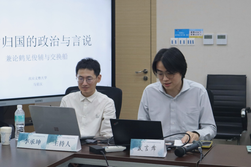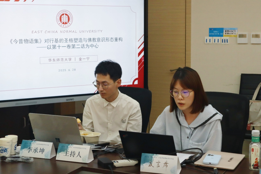 本次学术沙龙共有八位同学进行研究成果发表,涵盖文化理论、古典文学、历史事件、现当代文学及跨文化传播等领域,展现了青年学子在日本学研究领域的一些新的思考和尝试。复旦大学董悦同学以《“文化论”的条件》为题,深入剖析了“日本文化论”建构过程中的民族心理与历史轨迹。华东师范大学刘乐夏同学在《互文性视域下句题和歌的研究——以慈圆的〈文集百首〉》中,系统考察了平安末期至镰仓初期日汉文学间的互文现象。庆应义塾大学马星汉同学的题目是《“归朝者”的实像与虚像——以第一次日美交换船为例》,他通过详实的史料分析揭示了1942年日美交换船事件背后的政治宣传。上海交通大学张心妍同学以《后 3·11 语境下的越境书写与和平伦理——以多和田叶子 Hiruko 三部曲语言为中心》为题,探讨了文学作品对核能议题的独特表达方式。复旦大学方思颖同学的《以今揆古与敌我之辨——1959 年火野苇平的美国游记及其心态》,展现了冷战初期日本文化人在东西方夹缝中的思想困境。华东师范大学金一宁同学的《〈今昔物语集〉对行基的圣格塑造与佛教意识形态重构——以第十一卷第二话为中心》,深入分析了佛教意识形态的重构过程。复旦大学陆相凝同学以《想象“老年”——有吉佐和子〈恍惚的人〉对战后日本社会的作证》为题,探讨了文学作品对日本老龄化社会问题的深刻反映。上海外国语大学龙文威同学的《多模态传播视域下中国文学的日语译介:〈繁花〉在日本的接受与传播》,为中国文学海外传播研究提供了新视角。