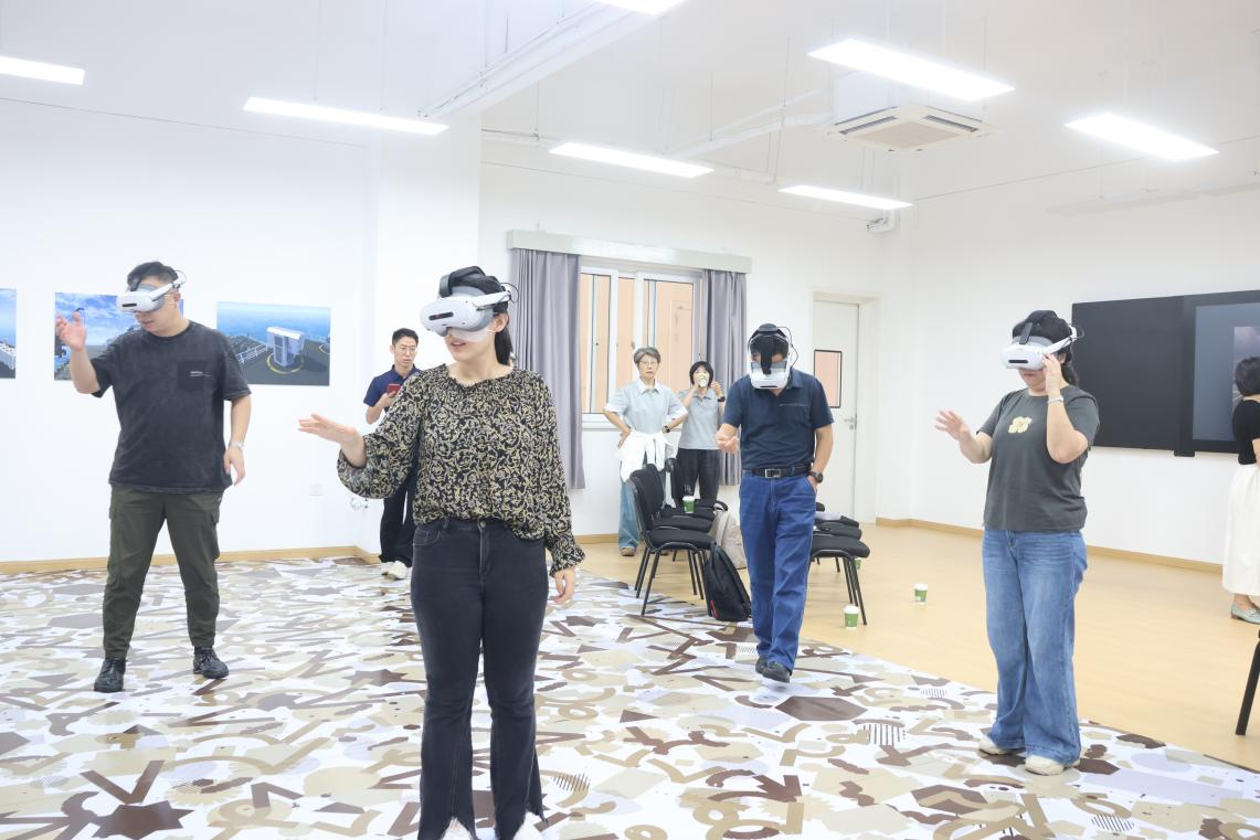 课程观摩结束后,团队移步至外国语学院AI+XR开元(中国)学习与实验中心。外国语学院副院长江妍首先对中心的建设背景、功能定位及运行机制进行详细介绍。据悉,该中心是外国语学院专为提升海军班英语教学质量搭建的专业化平台,通过3D虚拟现实技术还原海上作业、舰艇协作等海军英语高频应用场景,融合VR大空间技术与电影级视觉呈现构建高度仿真实训环境;同时依托AI语音识别与智能对话系统,模拟真实任务中的沟通场景,助力学员提升专业英语表达能力与临场应变能力。