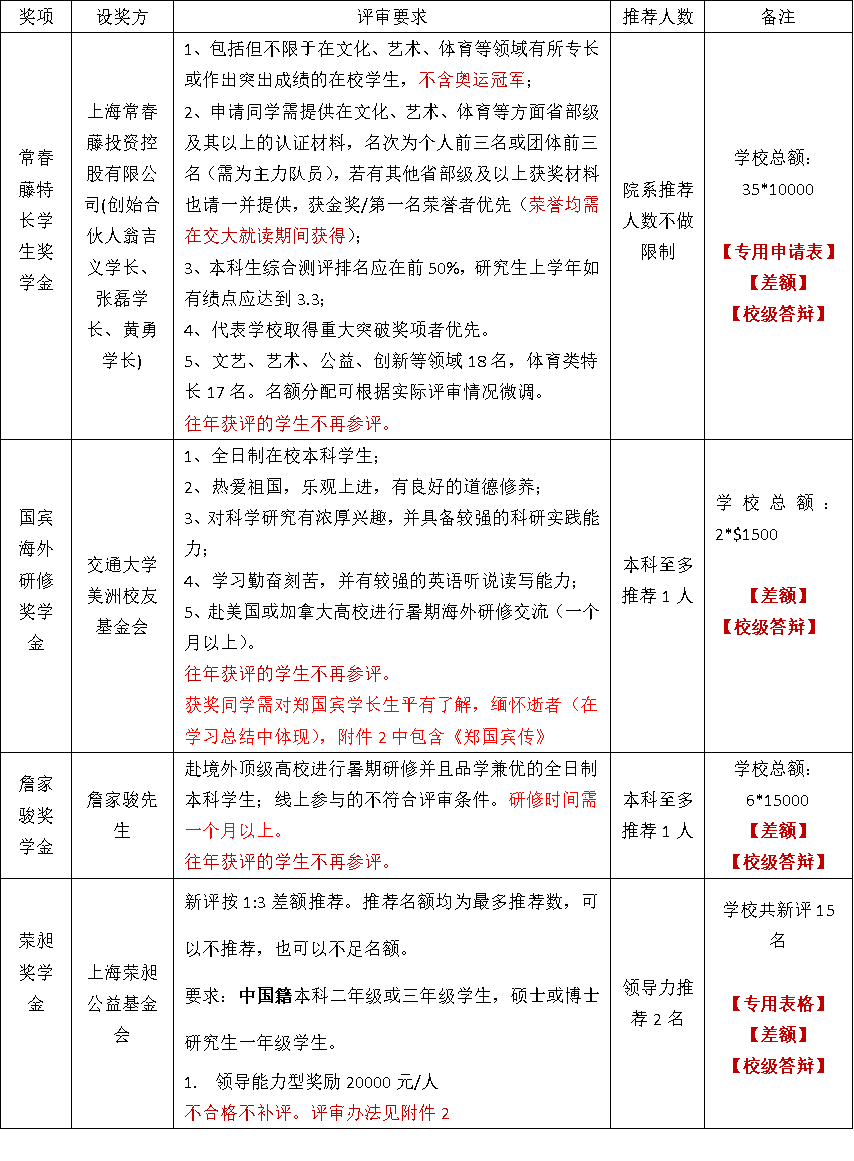 2. 对于已申请差额奖学金的学生,确定未获评前不得申请其他专项奖学金。