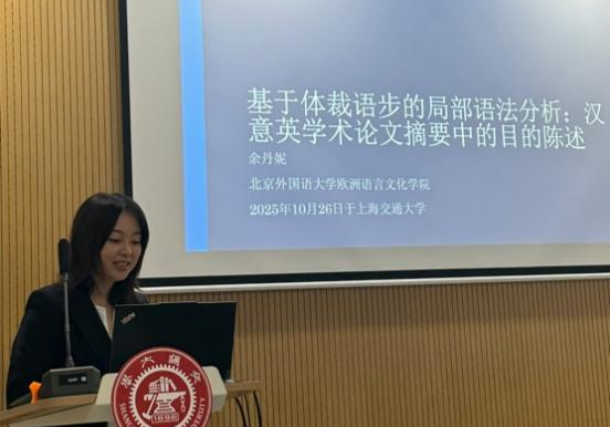 北京外国语大学余丹妮副教授以“Cross-linguistic local grammar analysis: The act of purpose-stating in research article abstracts in Chinese, Italian and English”为题,探讨了中、意、英三种语言学术论文摘要中研究目的陈述的局部语法特征,揭示了不同语言在研究目的表达方式上的异同,为理解学术语篇的意图表达提供了新的分析框架。