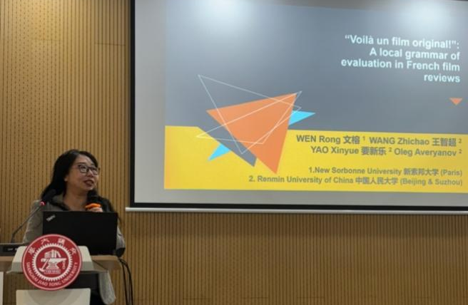 中国人民大学要新乐副教授的报告题为“‘Voilà un film original!’: A local grammar of evaluation in French film reviews”。她基于70万字法语影评语料构建了法语评价语法体系,揭示了法语与英语在评价功能实现上的趋同与差异,展示了局部语法作为跨语言比较工具的潜力。