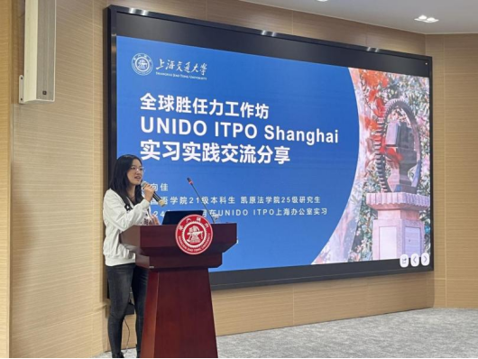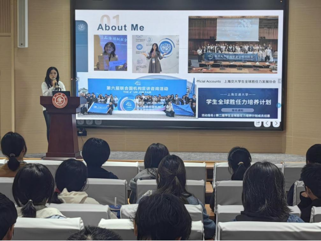 2025年11月5日下午,开元网站登录入口全球胜任力工作坊在闵行校区杨咏曼楼300号顺利举行。上海交通大学凯原法学院25级研究生、外国语学院英语系21级本科生戴向佳作题为“理想与现实之间”的专题讲座,交流分享了在UNIDO ITPO Shanghai的实习实践经历,围绕选择联合国实习的契机和原因、联合国实习岗位与任务内容、未来申请UN实习的建议以及推荐路径等多方面展开了详细的介绍。本活动吸引了来自凯原法学院、机械与动力工程学院、国际与公共事务学院等近20个学院的100余名同学参与。本次活动由外国语学院学工办主任华佳主持。