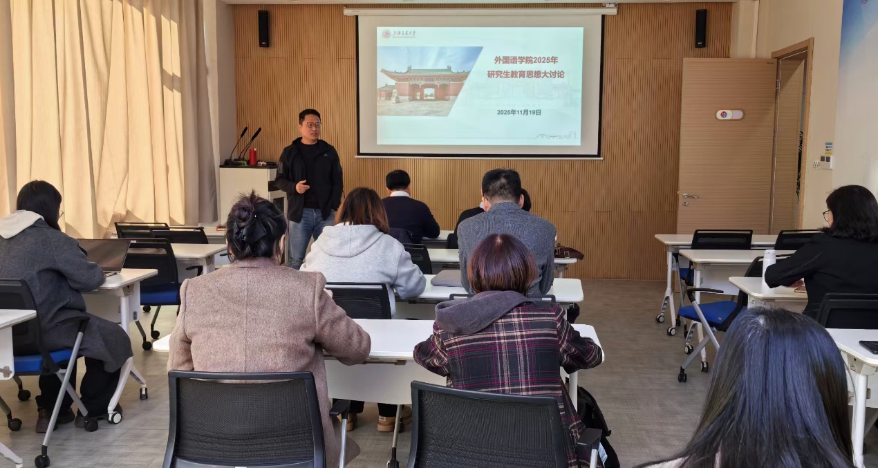 11月19日,外国语学院研究生教育思想大讨论暨导师座谈会在杨咏曼楼107会议室顺利召开。外国语学院院长尚必武,副院长陶庆、甄凤超,学院研究生导师以及教科办学工办相关老师参加会议,会议由学院副院长甄凤超主持。