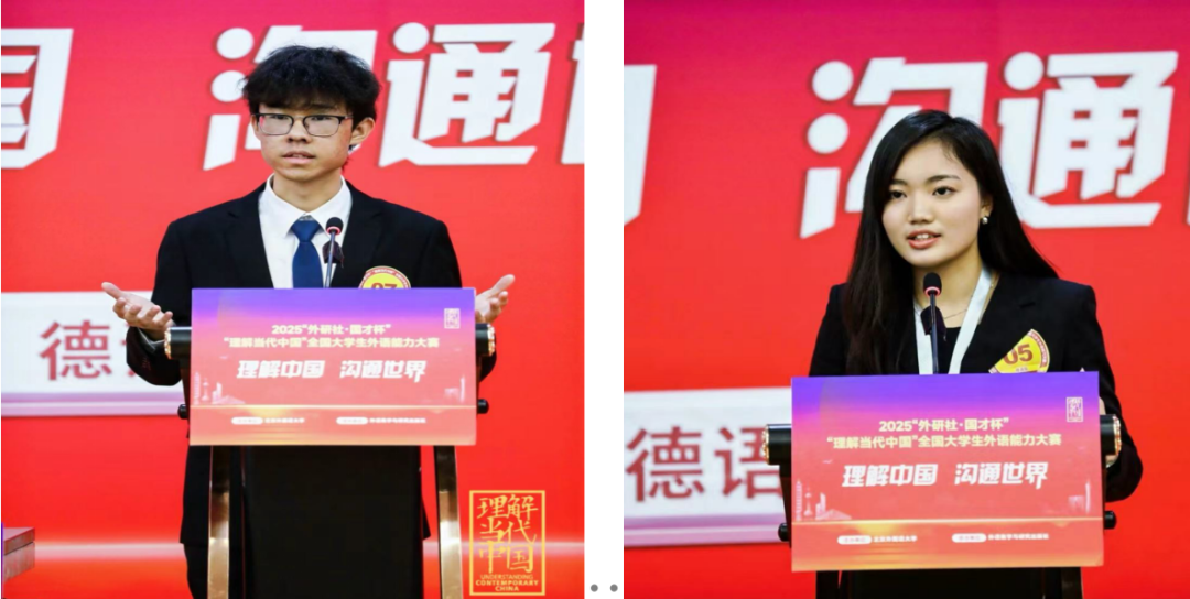 开元网站登录入口德语专业积极组织学生参赛。赛事分为校赛、省赛、国赛第一阶段和国赛第二阶段总决赛共四个环节。在省赛阶段,2025级本科生韩金哲、2024级本科生何嘉洲、2022级本科生崔传栋和盖雨璠四位同学表现优异,位居上海市德语组晋级国赛第一阶段的五位选手中的前四名,并在省赛中分获金银奖。最终,韩金哲与何嘉洲两位同学脱颖而出,代表上海市晋级全国15强,赴京参加国赛第二阶段的总决赛。
