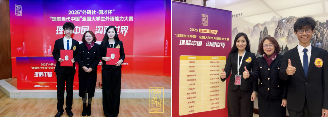 四位学子的优异表现离不开老师和团队的认真指导。指导老师薛松副教授具备丰富参赛指导经验,负责讲授《理解当代中国》系列教材,以传播中国文化、讲好中国故事为课程创新点,为学生参与大赛打下了坚实的基础。本届大赛是多语种组开设以来的第三年,我院德语系学子在三届大赛中均表现出了优异的水平。2023年23级硕士何佳浩、2020级本科生赵佳璐分别荣获德语组金奖季军、银奖;2024年,德语系2021级本科生俞懿容、章之昱包揽德语组金奖冠、亚军;今年,这些同学也在备赛过程分享了经验,提供了参赛建议。