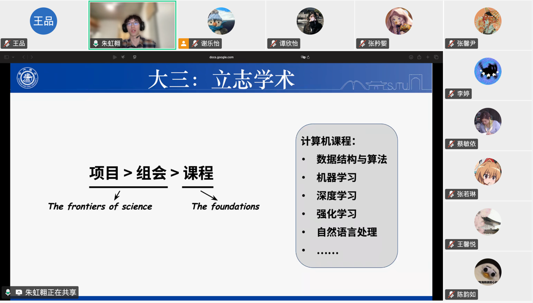 分享最后,朱虹翱再次鼓励同学们大胆尝试、探索自身感兴趣的方向,并留下联系方式,方便同学们后续学术与学业问题的交流探讨。